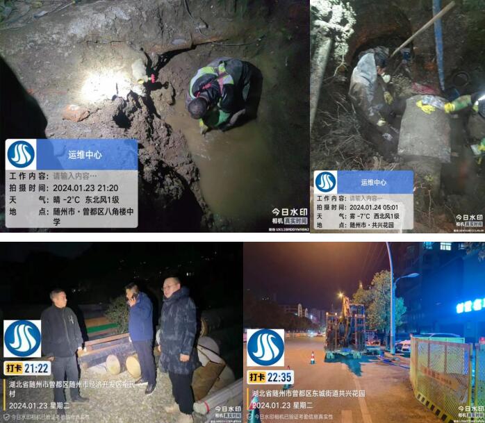 1月23日,有市民反映鐵路片區(qū)下坡處地面有積水,附近有學(xué)校,周邊住戶也較多,對(duì)市民出行造成極大安全隱患。測漏人員第一時(shí)間到場勘查,排查后發(fā)現(xiàn)漏點(diǎn)在下坡處拆遷區(qū)內(nèi),工作人員及時(shí)與當(dāng)?shù)厣鐓^(qū)居委會(huì)和相關(guān)部門取得聯(lián)系,經(jīng)過多方協(xié)調(diào),滿足施工條件后,立即組織搶修隊(duì)伍進(jìn)行開挖,在寒風(fēng)凜冽的深夜,搶修人員爭分奪秒,全然顧不上他們已凍得通紅的雙手,只希望以最快速度完成改造作業(yè),最大程度減小停水作業(yè)對(duì)居民的影響。當(dāng)晚21點(diǎn)25分歷時(shí)3小時(shí)將DN100管道漏水點(diǎn)搶修完畢,保障了極寒天氣下周邊居民、學(xué)生出行的安全。