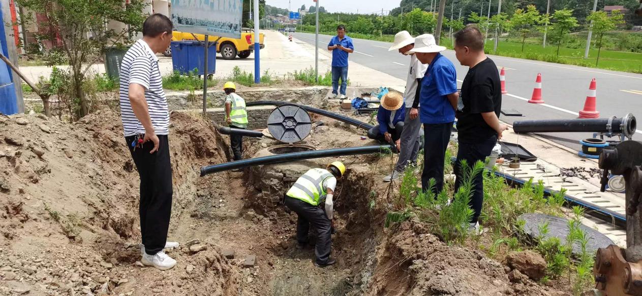 據(jù)悉,此次供水故障系主供水管道破裂所致,整個鄉(xiāng)鎮(zhèn)的供水均受影響。搶修現(xiàn)場,烈日炎炎,工作人員緊張而忙碌地奮戰(zhàn)著。他們憑借豐富的經(jīng)驗和專業(yè)的技能,很快確定了管道破裂的準(zhǔn)確位置,并組織人員進行開挖,經(jīng)檢查,發(fā)現(xiàn)漏水點為主管銹蝕所致。由于該處供水管網(wǎng)錯綜復(fù)雜,加大了搶修的難度。然而,困難并沒有阻擋搶修人員的腳步。為盡快恢復(fù)供水,搶修人員全然不顧休息,爭分奪秒地投入搶修作業(yè)。操作挖掘設(shè)備的人員全神貫注,負責(zé)切割和焊接管道的人員更是一絲不茍,每個人都汗如雨下,但手中的工作一刻未停。