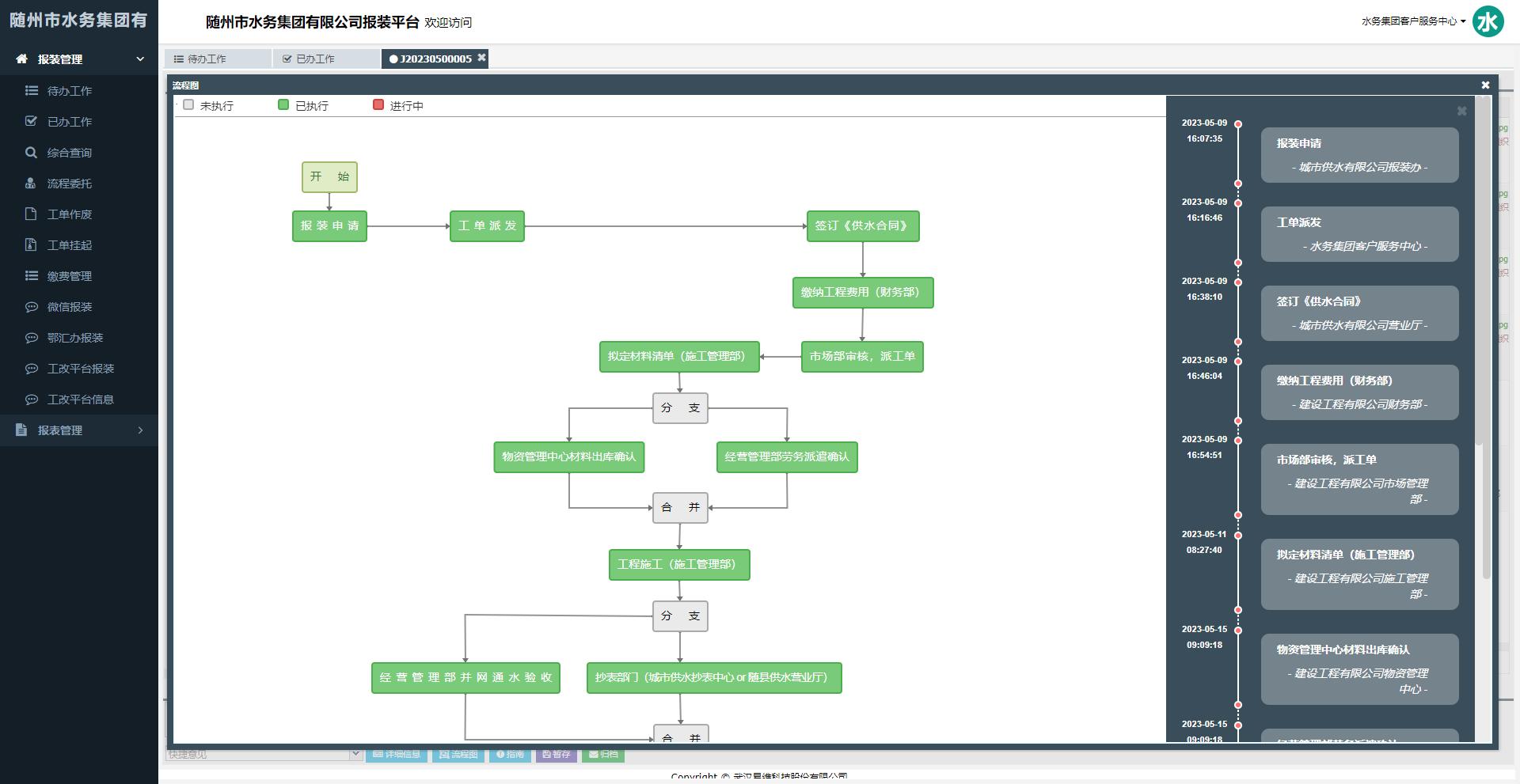 (5)報裝業(yè)務系統(tǒng)自動流轉提醒,自動記錄