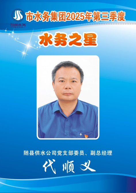 一名黨員就是一座燈塔。代順義,這位老共產(chǎn)黨員,幾十年如一日在基層一線(xiàn)恪盡職守、默默耕耘,用心用情保障農(nóng)村飲水安全,始終踐行著共產(chǎn)黨員的初心使命,讓黨旗在隨縣供水服務(wù)的最前線(xiàn)高高飄揚(yáng),也讓“水務(wù)之星”的光芒在這片土地上熠熠生輝。